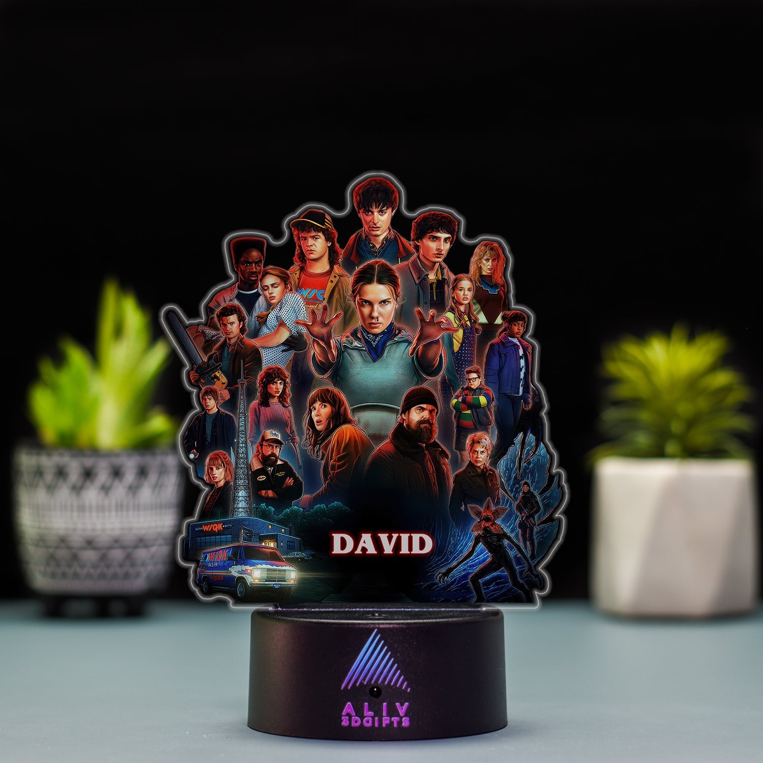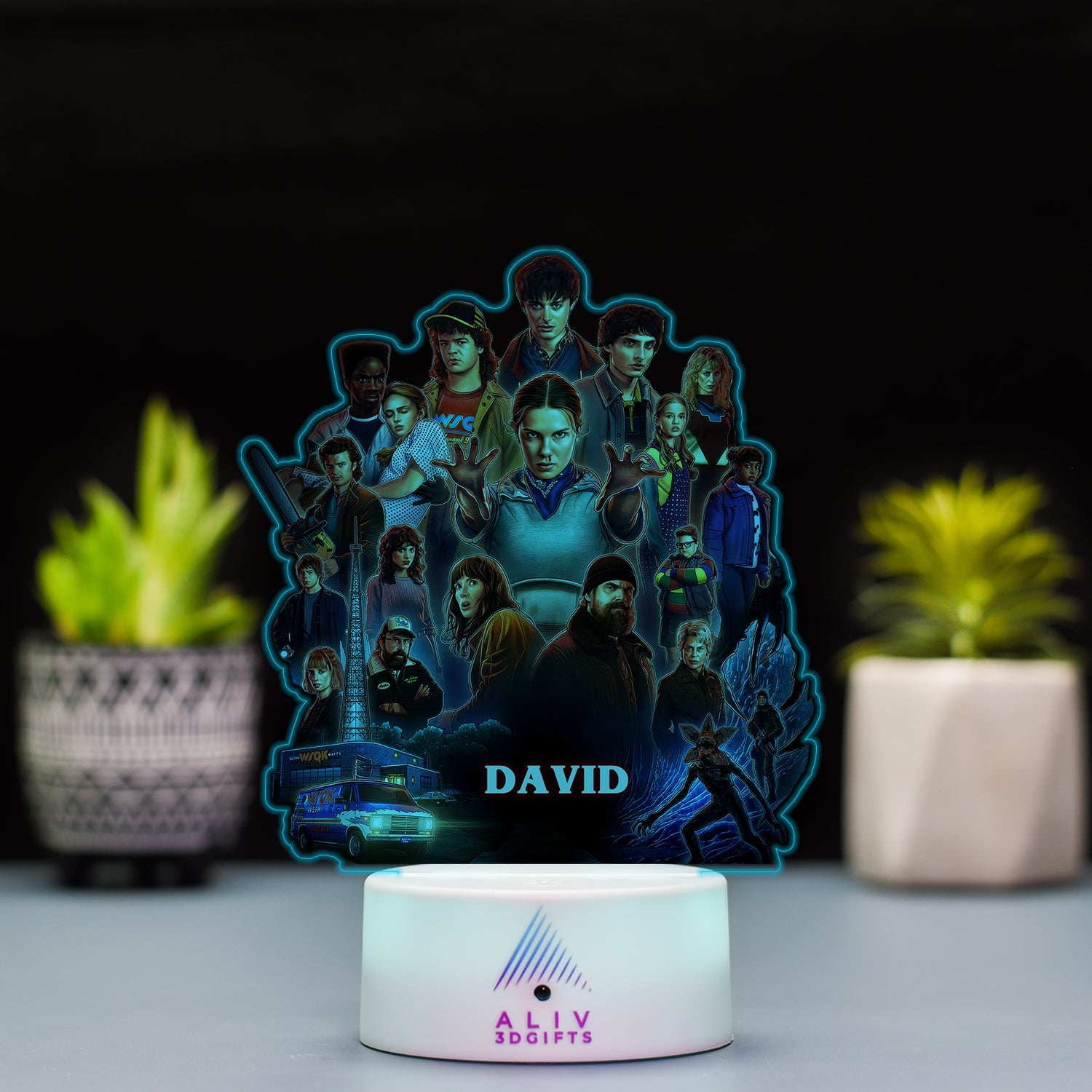✅Pachetul Include: Baza cu LED-uri, plachetă acrilică personalizată, cablu de alimentare și telecomandă (*varianta cu Boxa Bluetooth NU are telecomandă). |